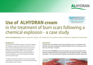 Rina Rijkenberg, chuyên gia trị liệu về da, Skin Therapy Clinic, Khoa chăm sóc sẹo và bỏng sau điều trị, Oosterbeek (Hà Lan) đã trình bày một ca lâm sàng của ALHYDRAN trong quản lý ngứa, mẫn đỏ và cảm giác căng cứng da sau bỏng do vụ nổ hóa chất tại Hội Nghị Hiệp Hội Bỏng Châu Âu (EBA) 2015.
