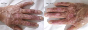 Sau ba tháng, làn da đã được cải thiện rõ rệt. Nó trông khỏe mạnh hơn và có ít vảy hơn. Mức độ hydrat hóa (dưỡng ẩm) của da được cải thiện và bệnh nhân cho biết bớt ngứa hơn. Việc điều trị kết thúc sau 18 tháng.