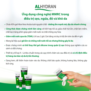 ALHYDRAN không phải kem dưỡng da thông thường. ALHYDRAN là thiết bị y tế loại A ứng dụng công nghệ MMRC (Medical Moisture Retention Cream) được sử dụng trong hỗ trợ điều trị sẹo và các tình trạng da bị tổn thương hàng rào bảo vệ (sau phẫu thuật, sau điều trị laser, peed da,…), với các mục tiêu: